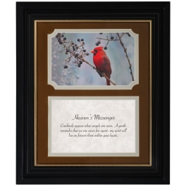 Price: $29.95 Cardinals Appear Heaven's Messanger Comfort Framed Prayer 12"H x 10"W Product Tags: Same-day Delivery